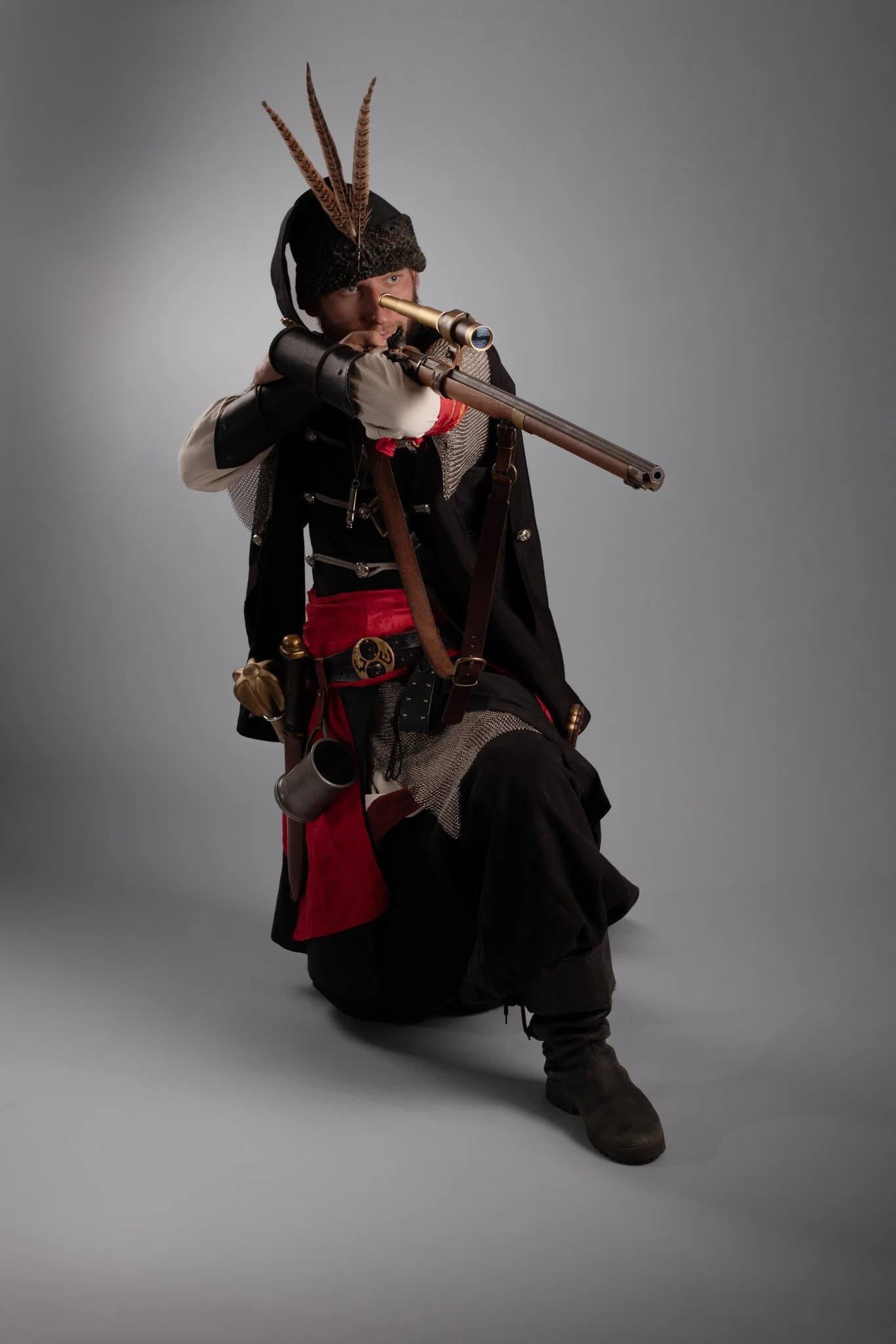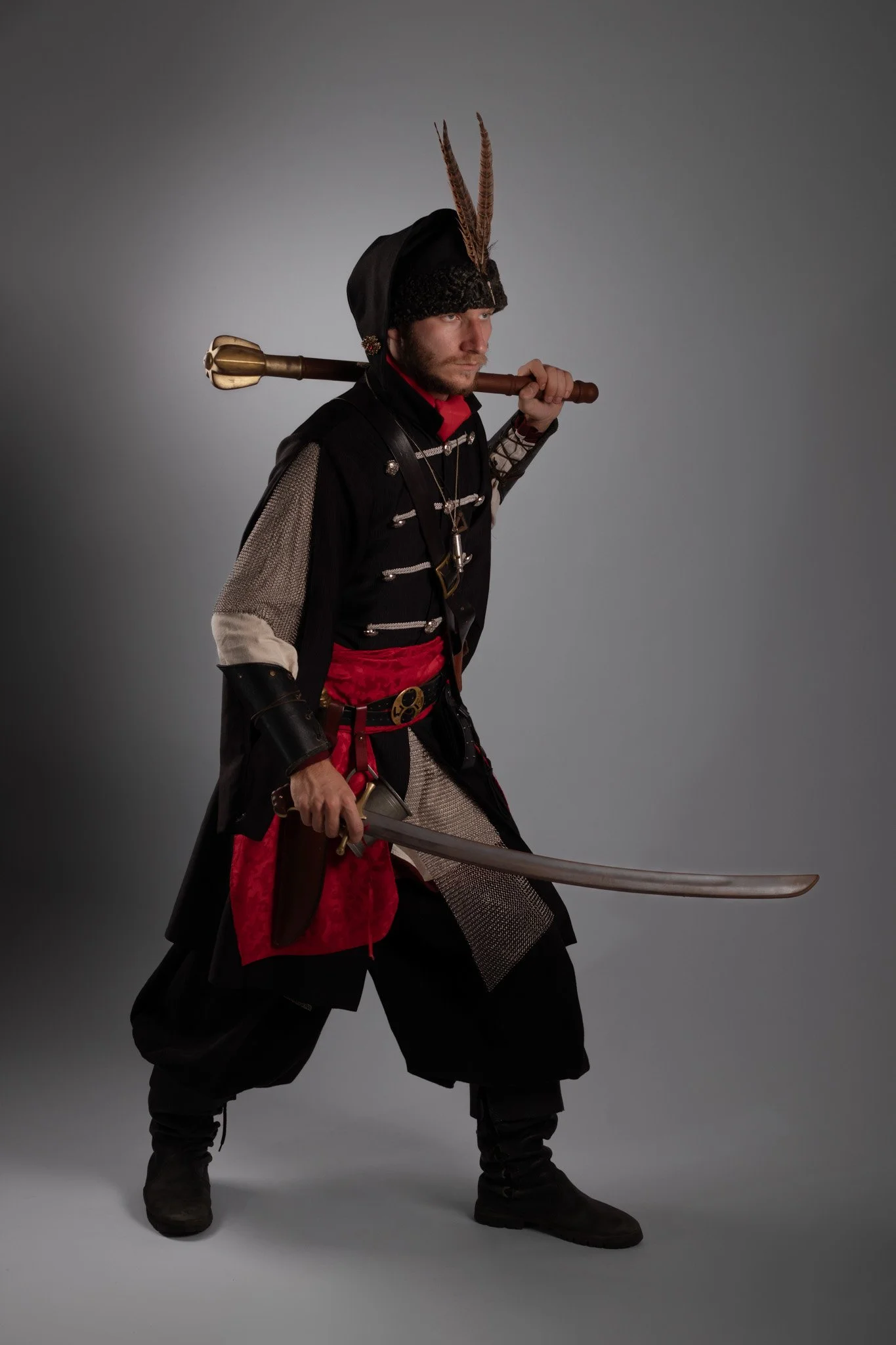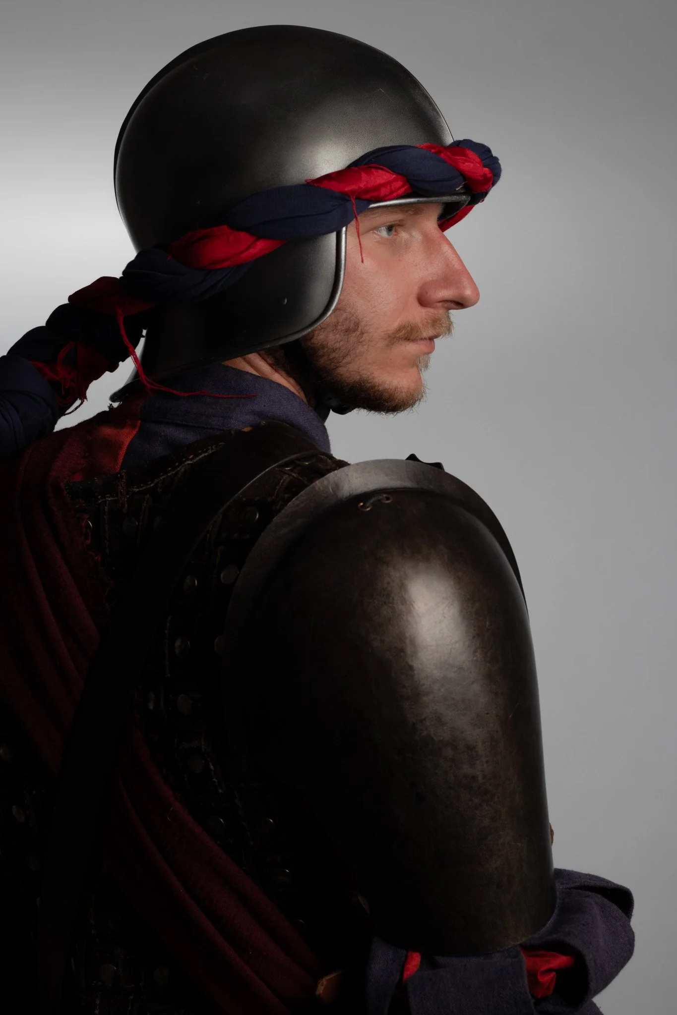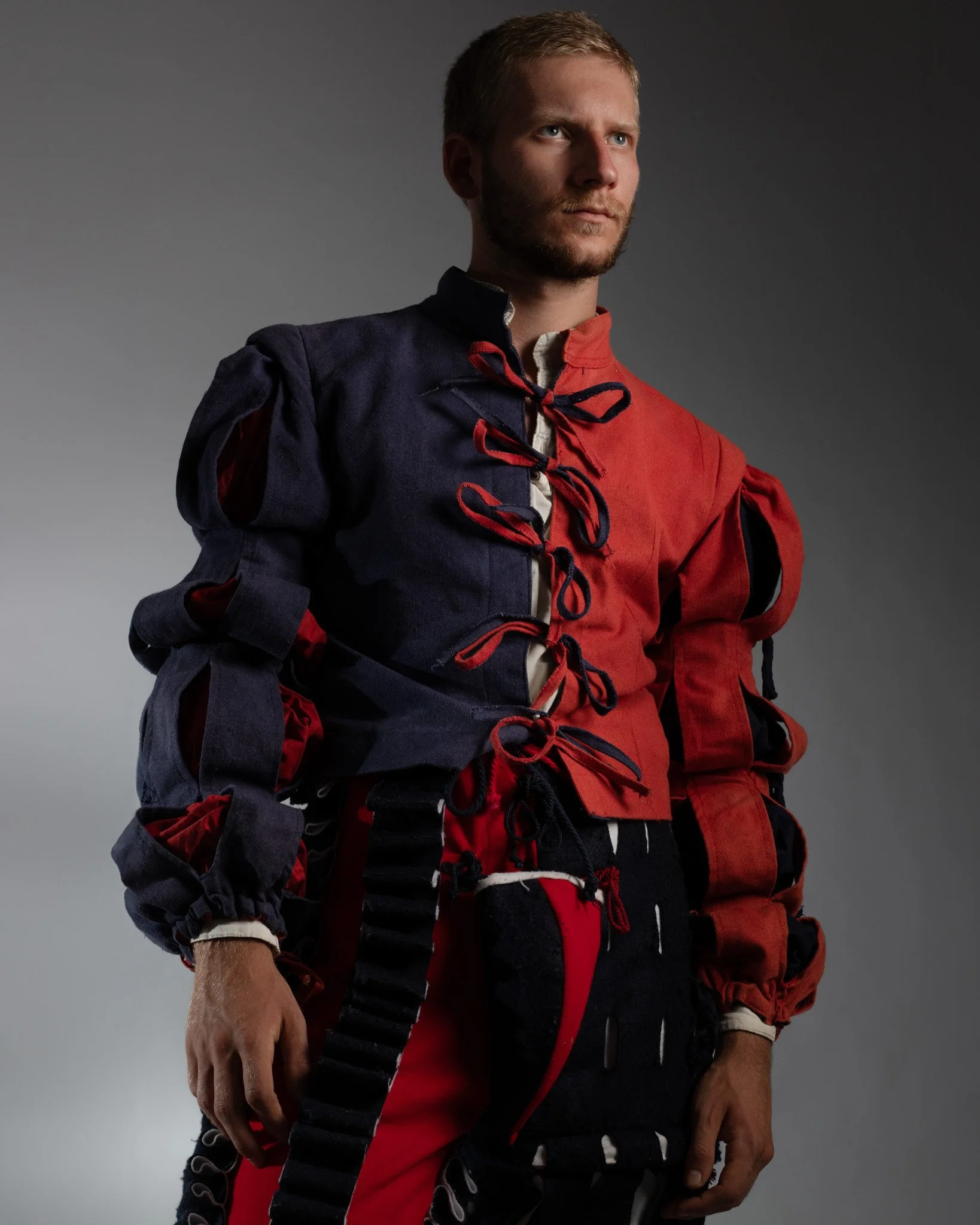 LARP acronimo di “live action role playing”, o grv “gioco di ruolo dal vivo”, è un’attività che sta prendendo sempre più spazio all’interno del panorama italiano e mondiale. Nel LARP, i partecipanti assumono i ruoli del personaggio scelto all’interno di una storia, vivendo fisicamente le sue avventure. Perseguono i suoi obiettivi, affrontano i suoi conflitti e ne custodiscono i segreti, condividendo così l’esperienza con gli altri giocatori. Tutto questo in ambientazioni fantastiche, ricreate in spazi reali scenografati, e con una direzione autoriale della trama. Oltre ad essere una attività affine al teatro d’improvvisazione, il gioco di ruolo dal vivo consente una notevole personalizzazione dei costumi. La maggior parte dei giocatori infatti costruisce i propri abiti di scena sartorialmente, attingendo alla storia per riferimenti accurati, ai videogiochi per un tocco d’estro e alla fantasia personale per un risultato unico ed inimitabile. I costumi non solo aiutano a rappresentare visivamente i personaggi, ma contribuiscono anche all’immersione e all’atmosfera del gioco. I partecipanti investono tempo e risorse nella forma estetica del loro alter ego, utilizzando materiali che spaziano dalla stoffa a elementi di design artigianale, per riflettere fedelmente il mondo di gioco e le caratteristiche del proprio personaggio. questo progetto mira a far conoscere il LARP ad un pubblico inesperto, decontestualizzando in uno spazio neutro un giocatore di lunga data. L’obiettivo di questi scatti è creare un alone di mistero intorno questa attività, invitando il pubblico a fantasticare come se stesse ruolando* insieme al nostro protagonista e ad osservare con cura ogni minuzioso dettaglio del vestiario unico di ciascun personaggio. Si tratta di un gioco che ci trasporta in altri tempi e luoghi, un viaggio di fantasia unico, così come lo erano, in fin dei conti, le avventure che vivevamo con i nostri giocattoli da bambini.